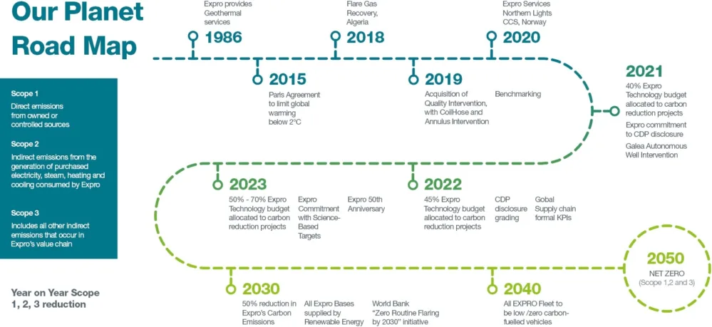 We will do this by enhancing what we do today, maximising our operational efficiency, and creating plans to make a difference in the future. By achieving a 50% reduction in CO2e by 2030 and Net Zero by 2050, the developed roadmap underpinned by the four elements outlines Expro’s commitment to engineering the future energy transition.