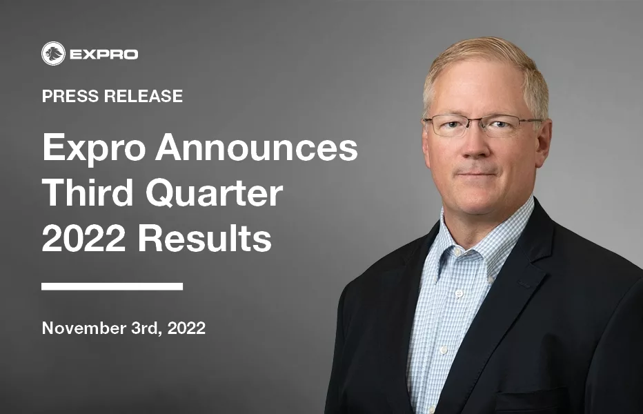 HOUSTON - November 3, 2022 - Expro Group Holdings N.V. (NYSE: XPRO) (the “Company” or “Expro”) today reported financial and operational results for the three and nine months ended September 30, 2022.