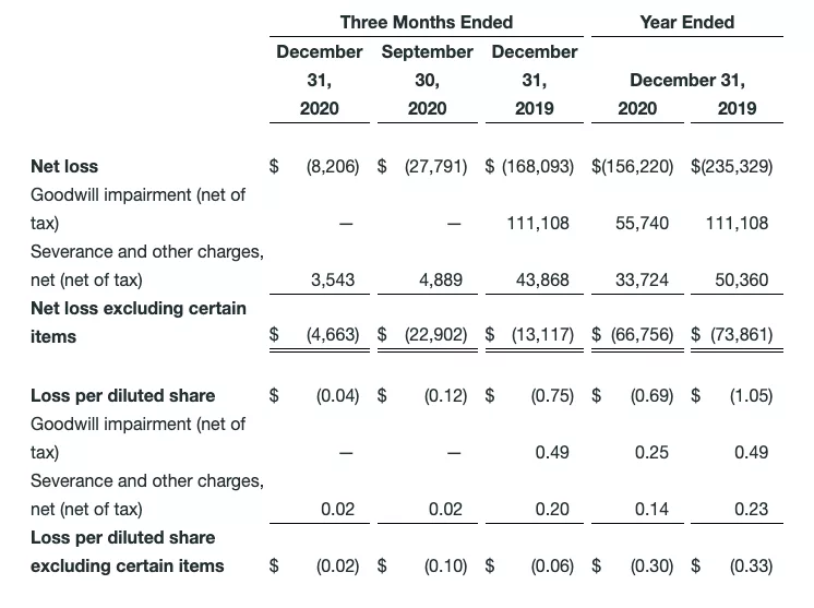 This press release and the accompanying schedules include the non-GAAP financial measures of adjusted net loss, adjusted net loss per diluted share, free cash flow, adjusted EBITDA and adjusted EBITDA margin, which may be used periodically by management when discussing the Company’s financial results with investors and analysts. The accompanying schedules of this press release provide a reconciliation of these non-GAAP financial measures to their most directly comparable financial measure calculated and presented in accordance with GAAP. Adjusted net loss, adjusted net loss per diluted share, free cash flow, adjusted EBITDA and adjusted EBITDA margin are presented because management believes these metrics provide additional information relative to the performance of the Company’s business. These metrics are commonly employed by financial analysts and investors to evaluate the operating and financial performance of the Company from period to period and to compare it with the performance of other publicly traded companies within the industry. You should not consider adjusted net loss, adjusted net loss per diluted share, free cash flow, adjusted EBITDA and adjusted EBITDA margin in isolation or as a substitute for analysis of the Company’s results as reported under GAAP. Because adjusted net loss, adjusted net loss per diluted share, free cash flow, adjusted EBITDA and adjusted EBITDA margin may be defined differently by other companies in the Company’s industry, the Company’s presentation of these non-GAAP financial measures may not be comparable to similarly titled measures of other companies, thereby diminishing their utility.