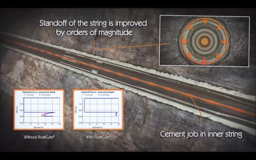Enabled by Expro's proprietary and field proven SeaCure® technology, FloatCure® harnesses the power of buoyancy to reduce the effective weight and corresponding torque and drag of the string being cementing, ultimately improving its standoff and the overall quality of the cement job.
