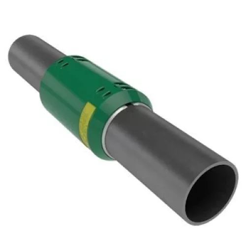 The AEGIS™ Tubular Protector is designed and manufactured to withstand the most difficult downhole environments, with an axial holding force of 30,000 lbs. and a lateral force of 5,000 lbs. It attaches to the outside diameter of the drill pipe. Inner steel clamps remain stationary on the drill pipe tube body, while the outer sleeve halves are coupled together around the inner clamps. During operation, the inner clamps rotate with the drill string, while the outer sleeve remains stationary against the sides of the wellbore. This limits the contact between the wellbore wall and the drill string, isolating any wear to the outer sleeve of the AEGIS™ Tubular Protector while protecting the inner clamps.